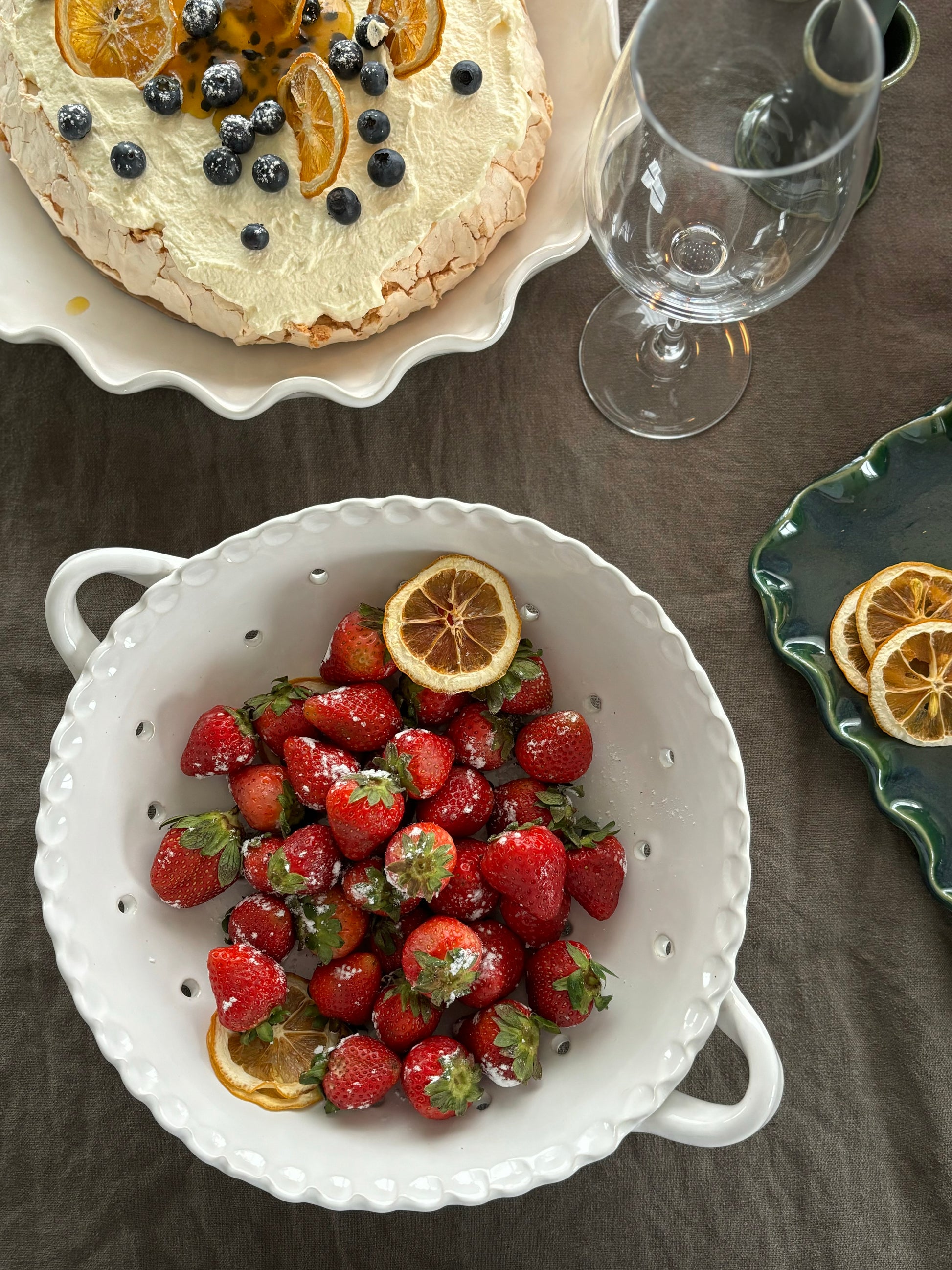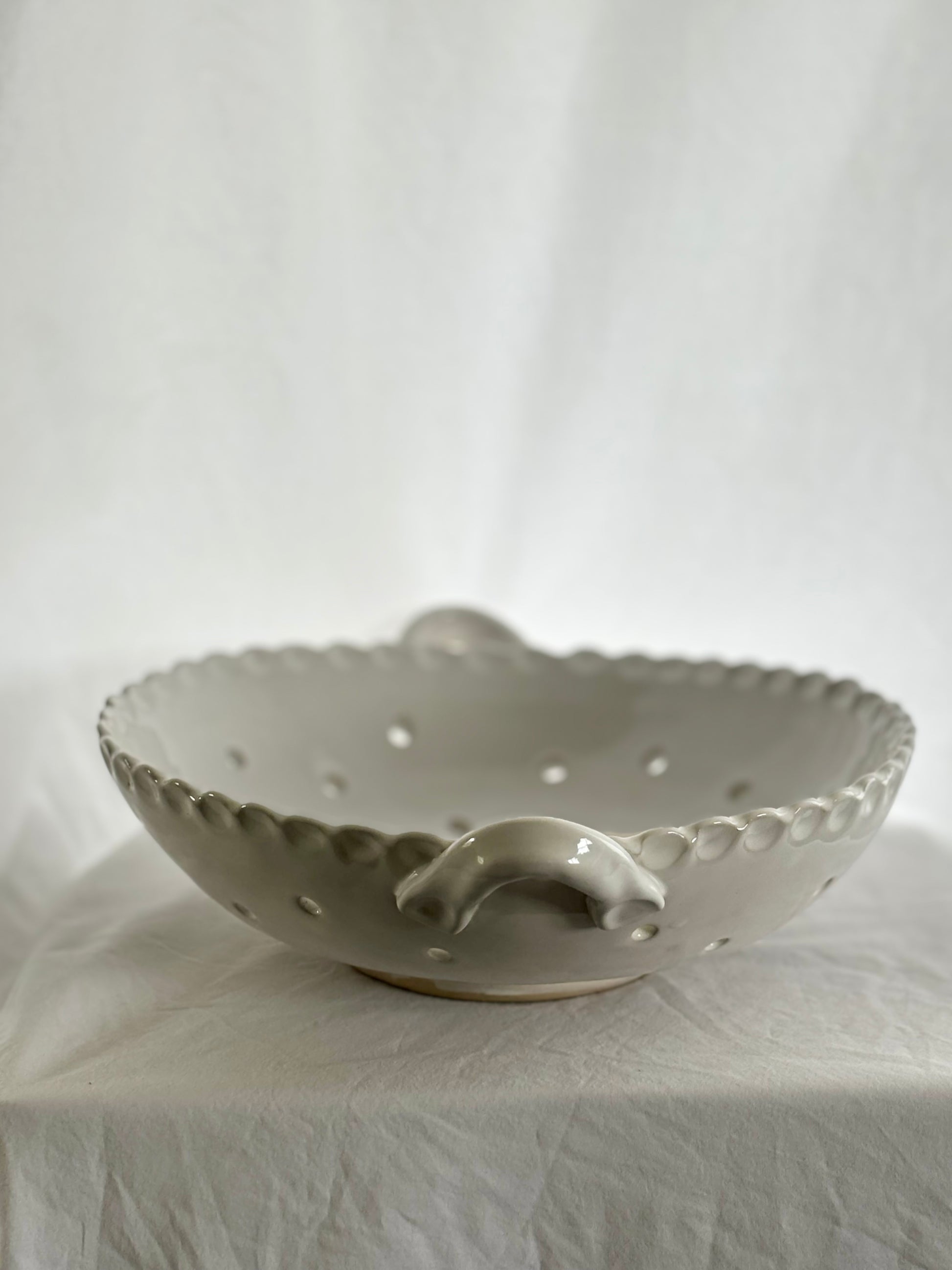 This large ceramic colander is perfect for rinsing and straining various foods while cooking. Its durable material and spacious design make it a convenient and practical tool for any kitchen. Save time and effort with this essential cooking accessory.